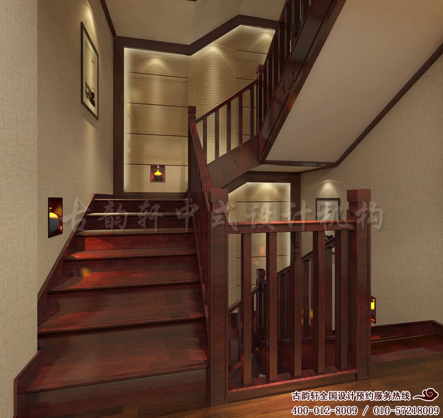 楼梯口古韵浓郁,并以大方、流畅的线条勾勒,极富奢华迷醉之效