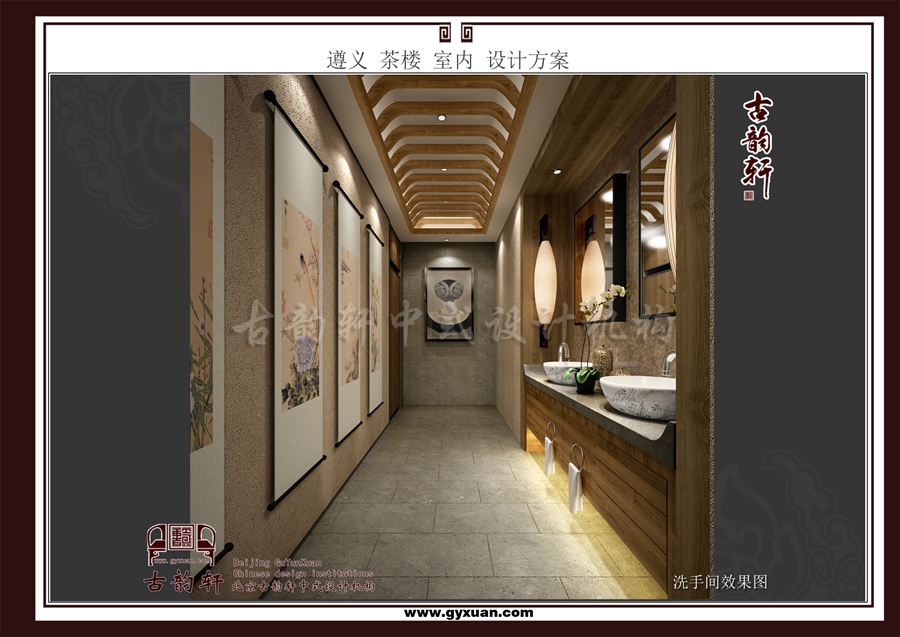 茶楼门头采用双层瓦檐古典门头,马头墙,垂花柱,青砖绿瓦,古韵盎然。