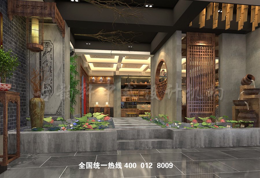 案例说明:西安中式养生会馆装修效果图,具有典型的复古建筑格调,可是,整体上根据现代人对传统文化的需求与理解,加之较为完美的现代工艺,将雕饰精美的石质造型以及原木朴实的木框栏杆融入到大气而尊贵的古典人文气息里,不但造就了新古典中式风格养生会所的美韵与典雅,还能让人从细腻的入笔处,体会到灵秀精致的创新设计。古韵轩设计师正是遵循了这种独到的构思理念,结合业主的实际需求,为您精心勾勒出一个具有淳厚中式韵味、且又清新淡雅、品位高端的养生休闲空间,为大家忙碌繁杂的工作之余,缔造出怡然自得的生活哲学。