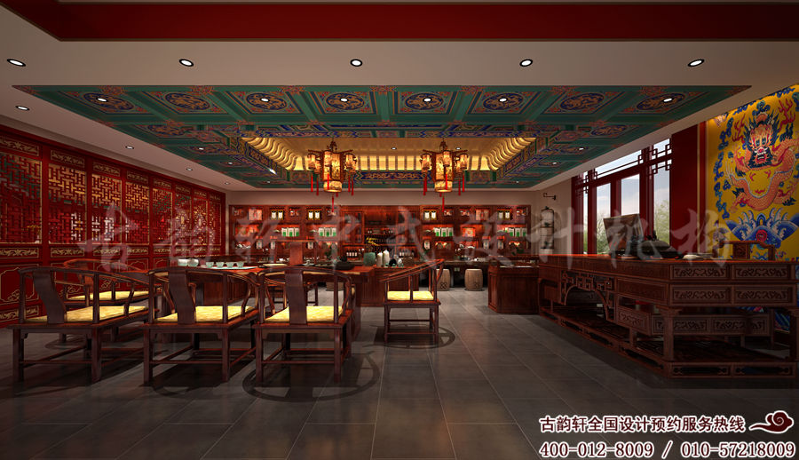 【大厅】中式设计意蕴浓郁,配有古琴演艺区,复古纹理家具摆设雅然精致。艺术饰物,花格屏风,也无形中为会所空间添就了尊享之感。